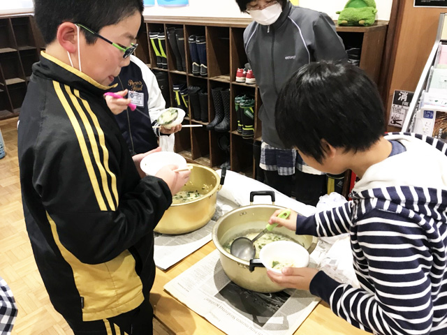 みんなで協力して混ぜます